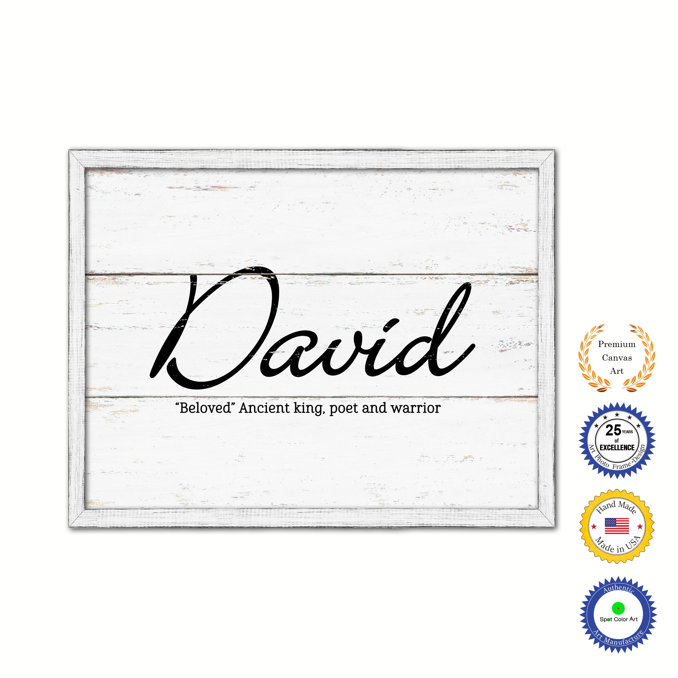 David Name Plate White Wash Wood Frame Canvas Print Boutique Cottage Decor Shabby Chic