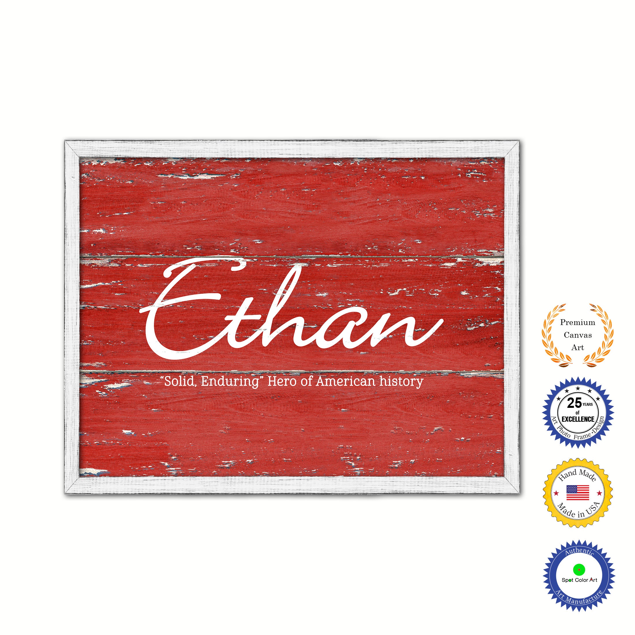 Ethan Name Plate White Wash Wood Frame Canvas Print Boutique Cottage Decor Shabby Chic