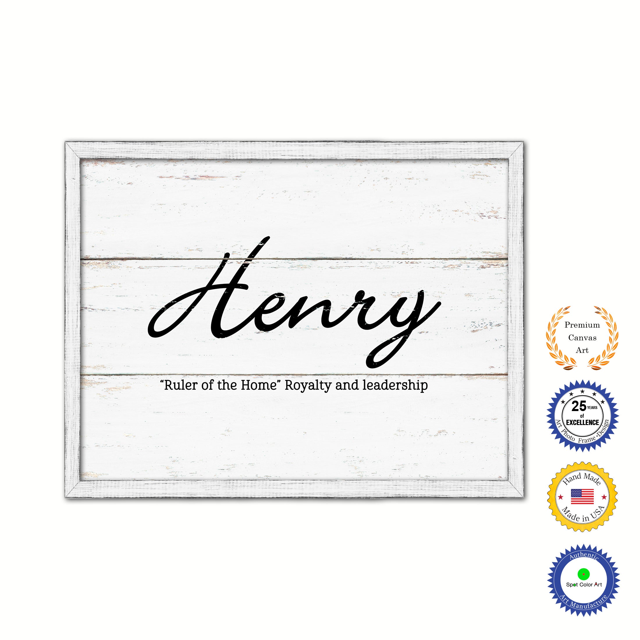 Henry Name Plate White Wash Wood Frame Canvas Print Boutique Cottage Decor Shabby Chic