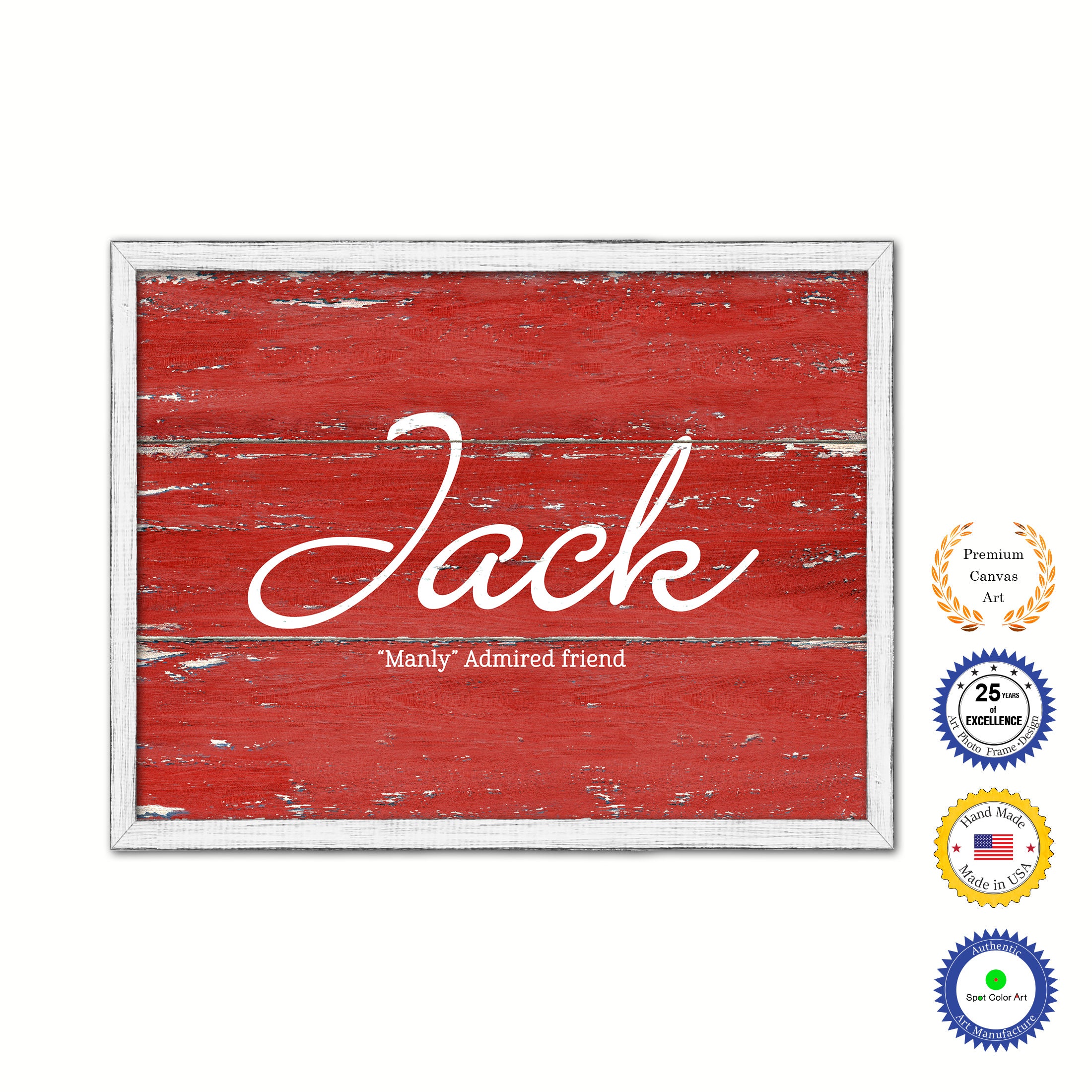 Jack Name Plate White Wash Wood Frame Canvas Print Boutique Cottage Decor Shabby Chic