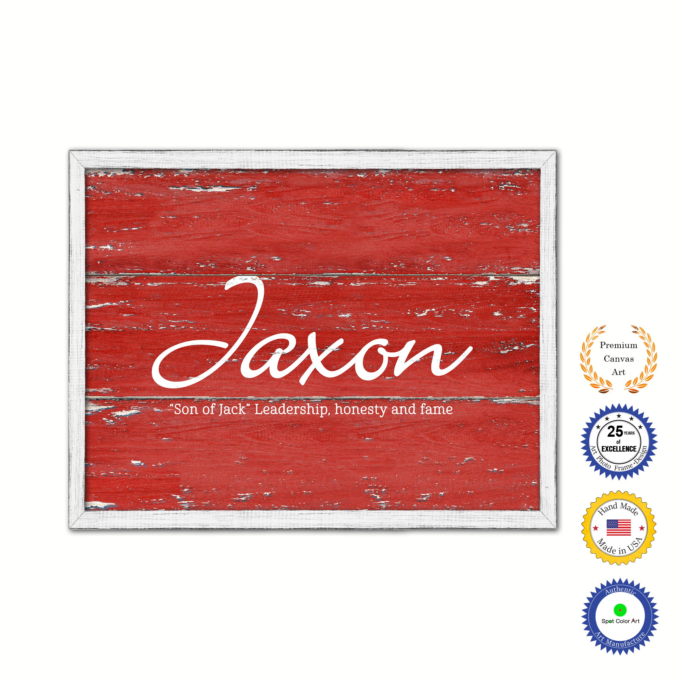 Jaxon Name Plate White Wash Wood Frame Canvas Print Boutique Cottage Decor Shabby Chic