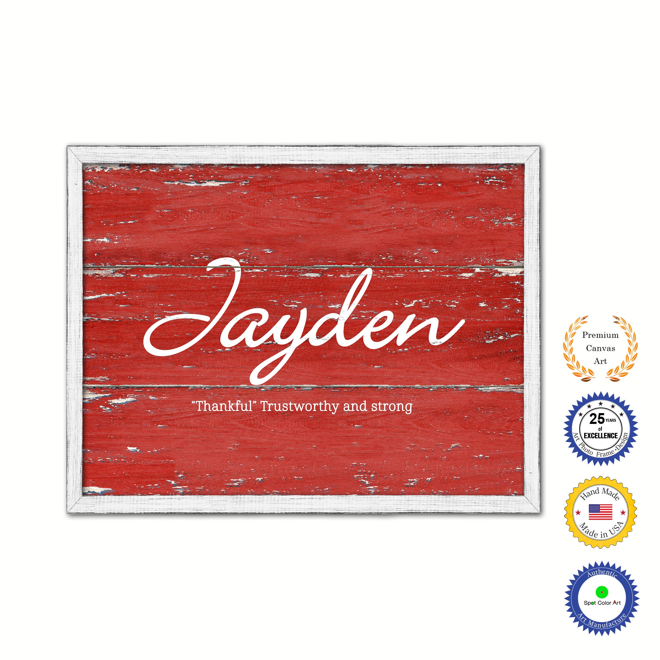 Jayden Name Plate White Wash Wood Frame Canvas Print Boutique Cottage Decor Shabby Chic
