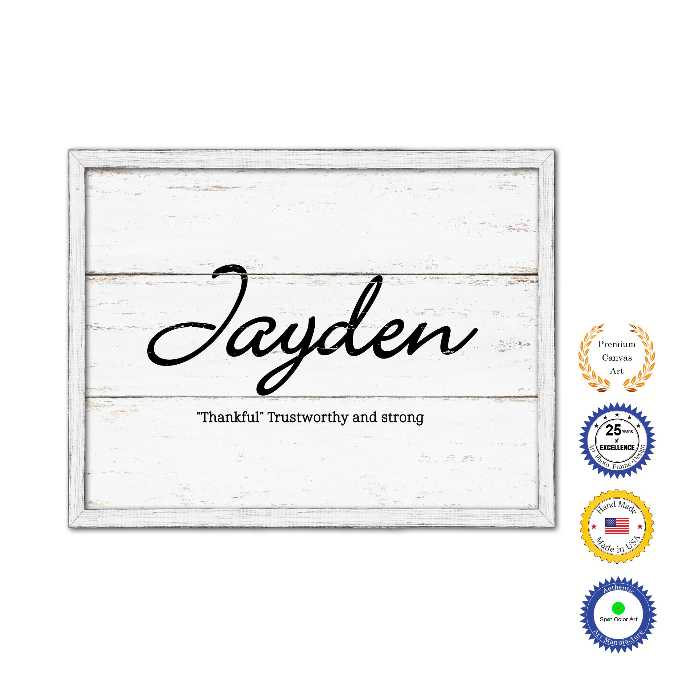 Jayden Name Plate White Wash Wood Frame Canvas Print Boutique Cottage Decor Shabby Chic