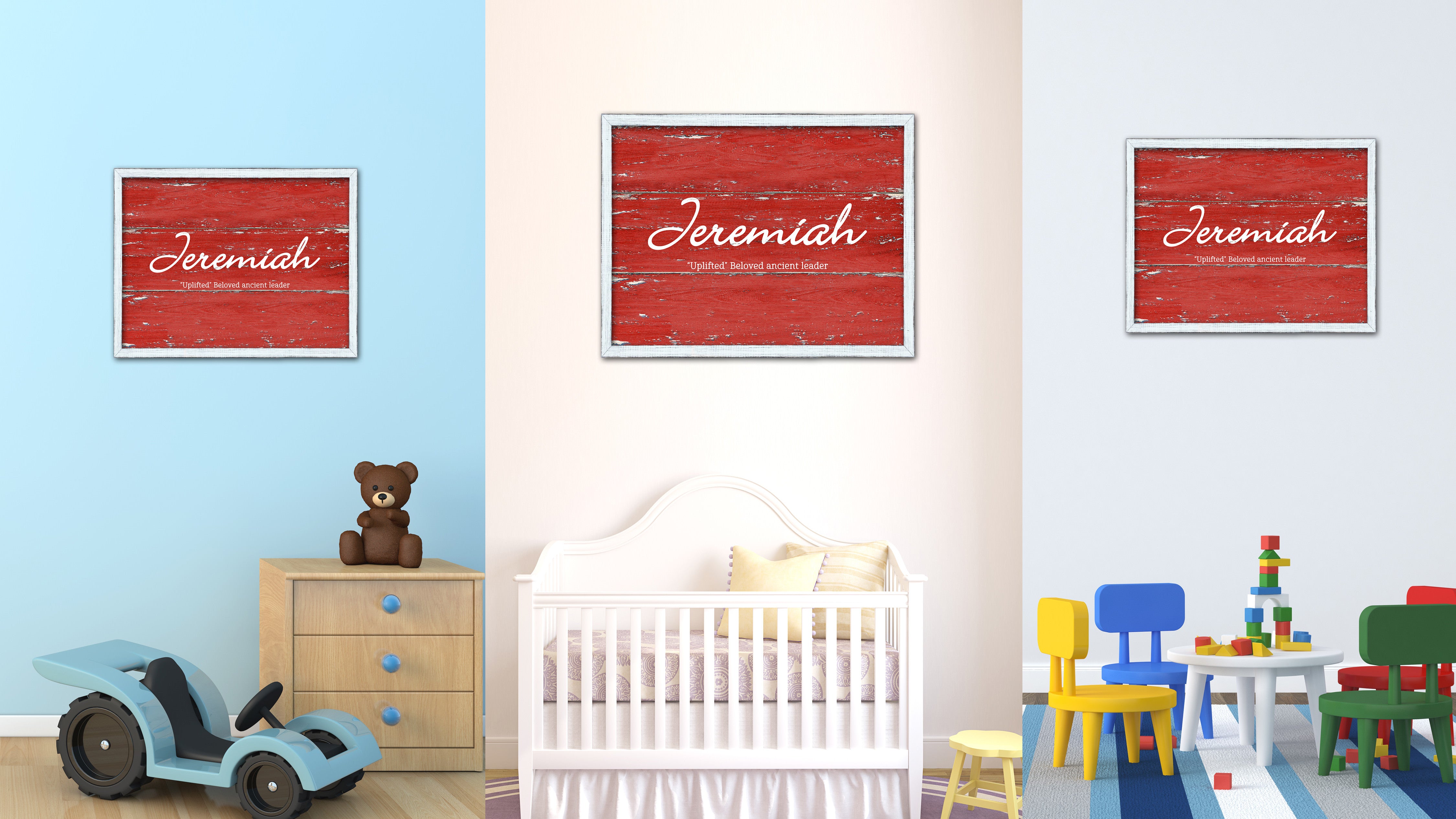 Jeremiah Name Plate White Wash Wood Frame Canvas Print Boutique Cottage Decor Shabby Chic