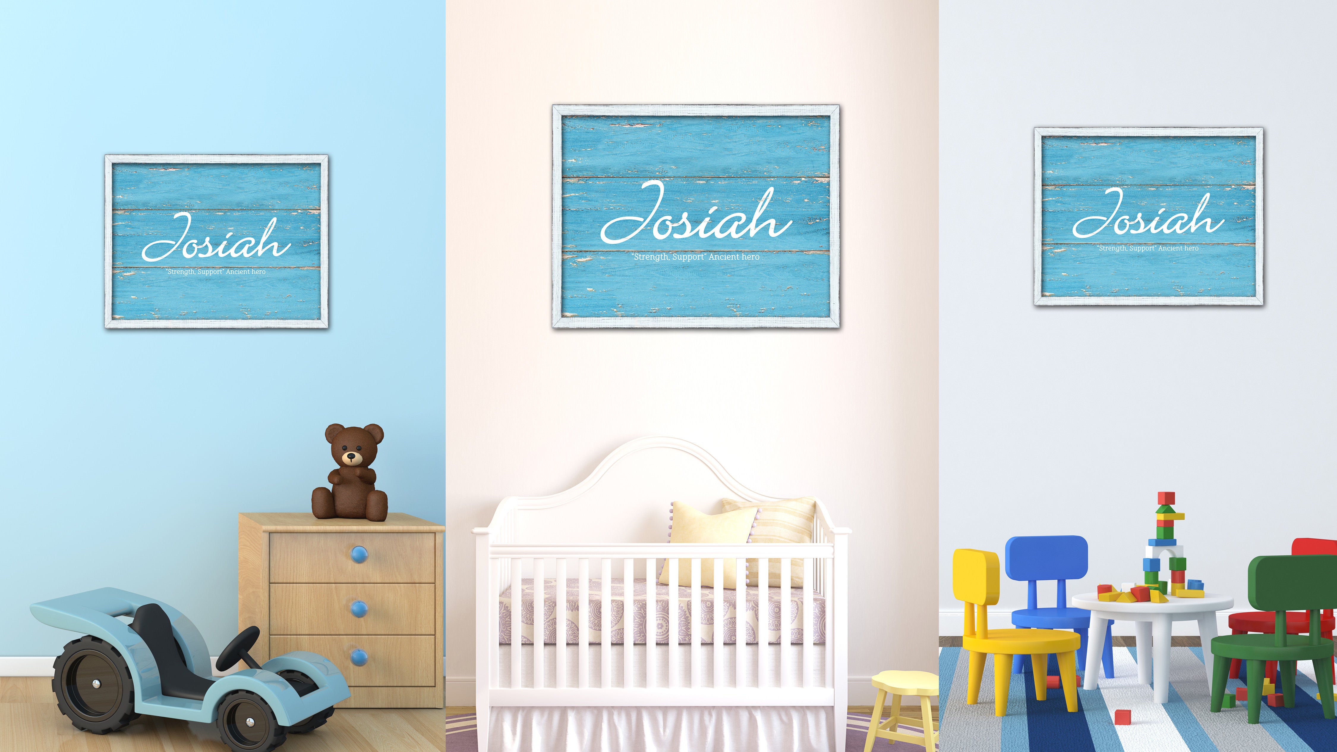 Josiah Name Plate White Wash Wood Frame Canvas Print Boutique Cottage Decor Shabby Chic