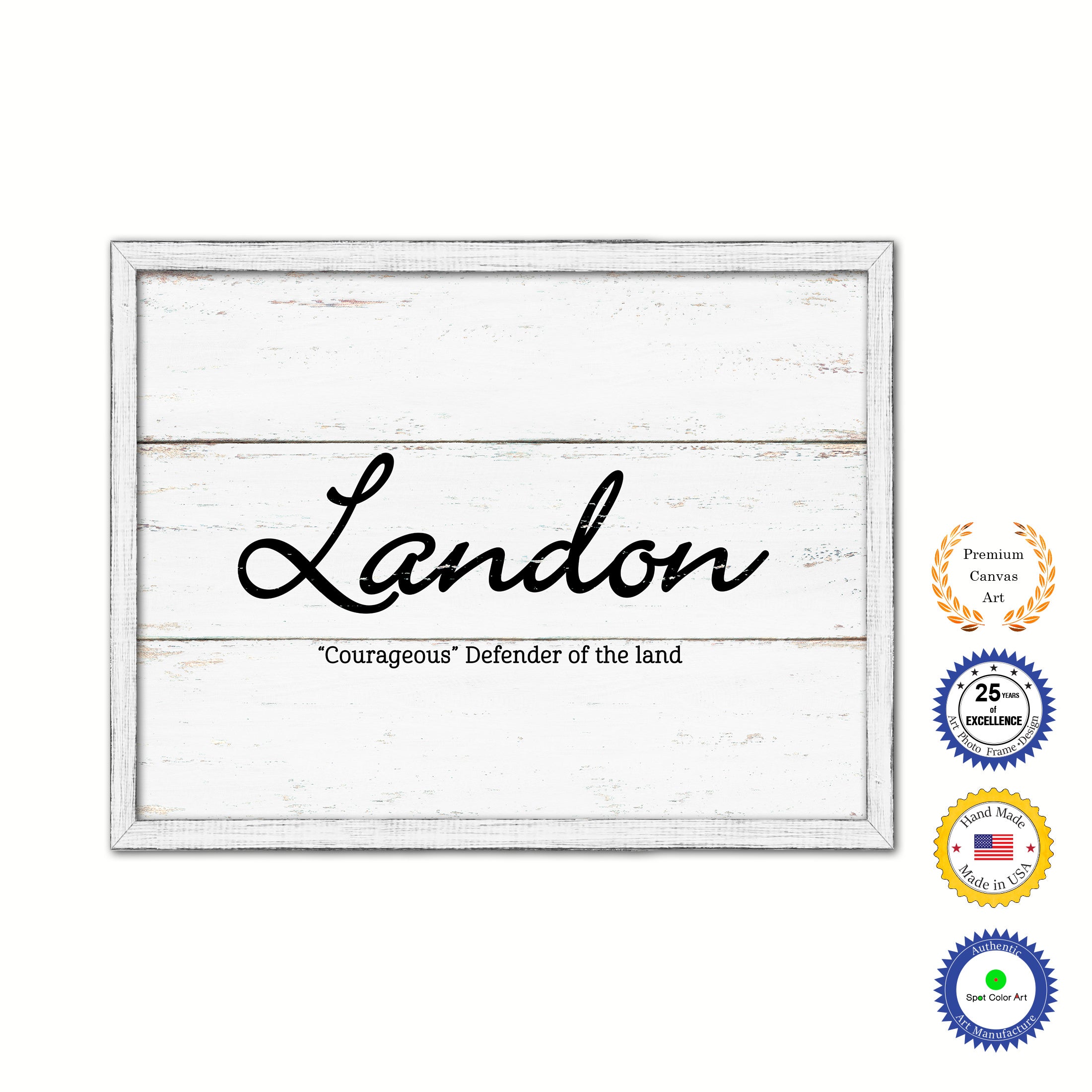 Landon Name Plate White Wash Wood Frame Canvas Print Boutique Cottage Decor Shabby Chic
