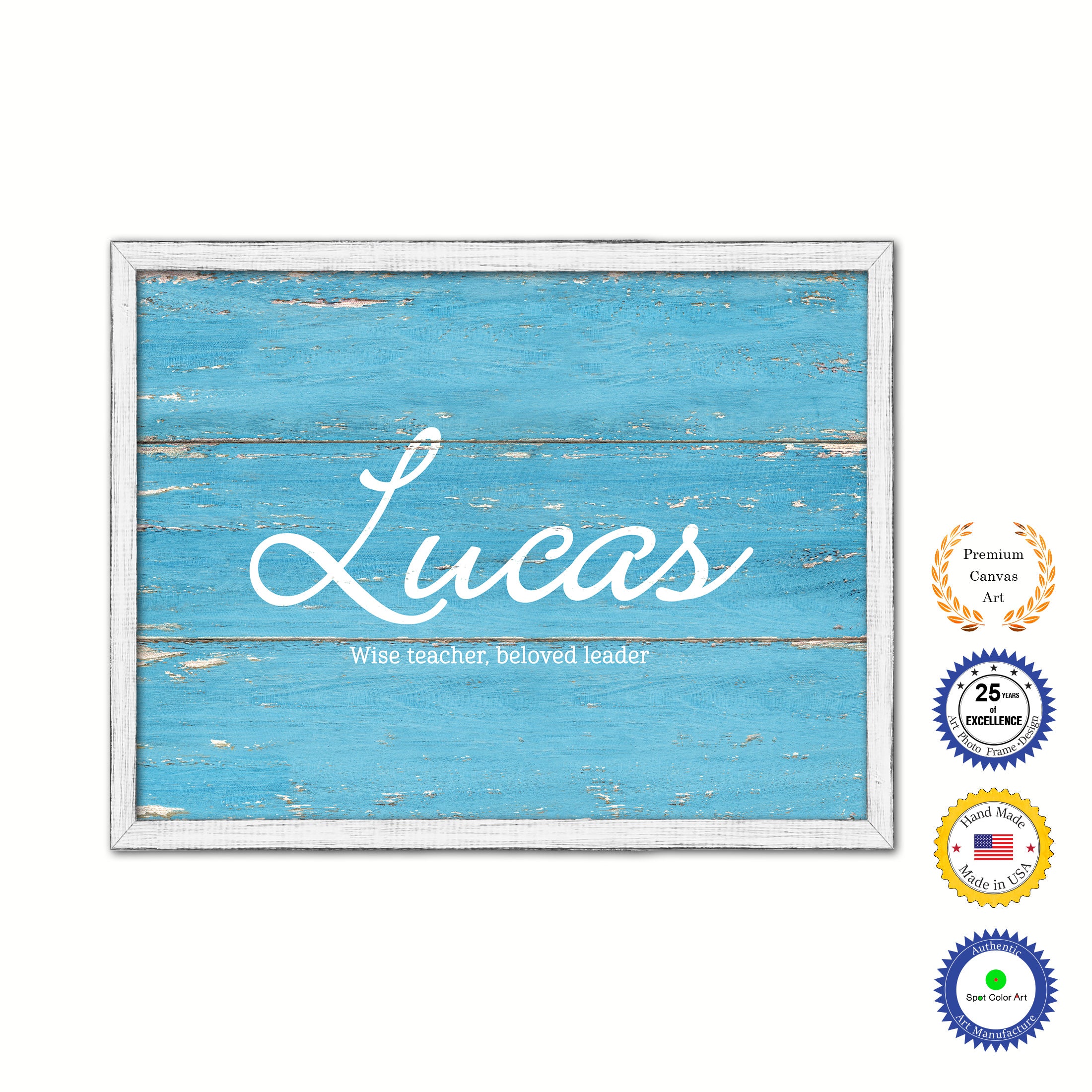 Lucas Name Plate White Wash Wood Frame Canvas Print Boutique Cottage Decor Shabby Chic