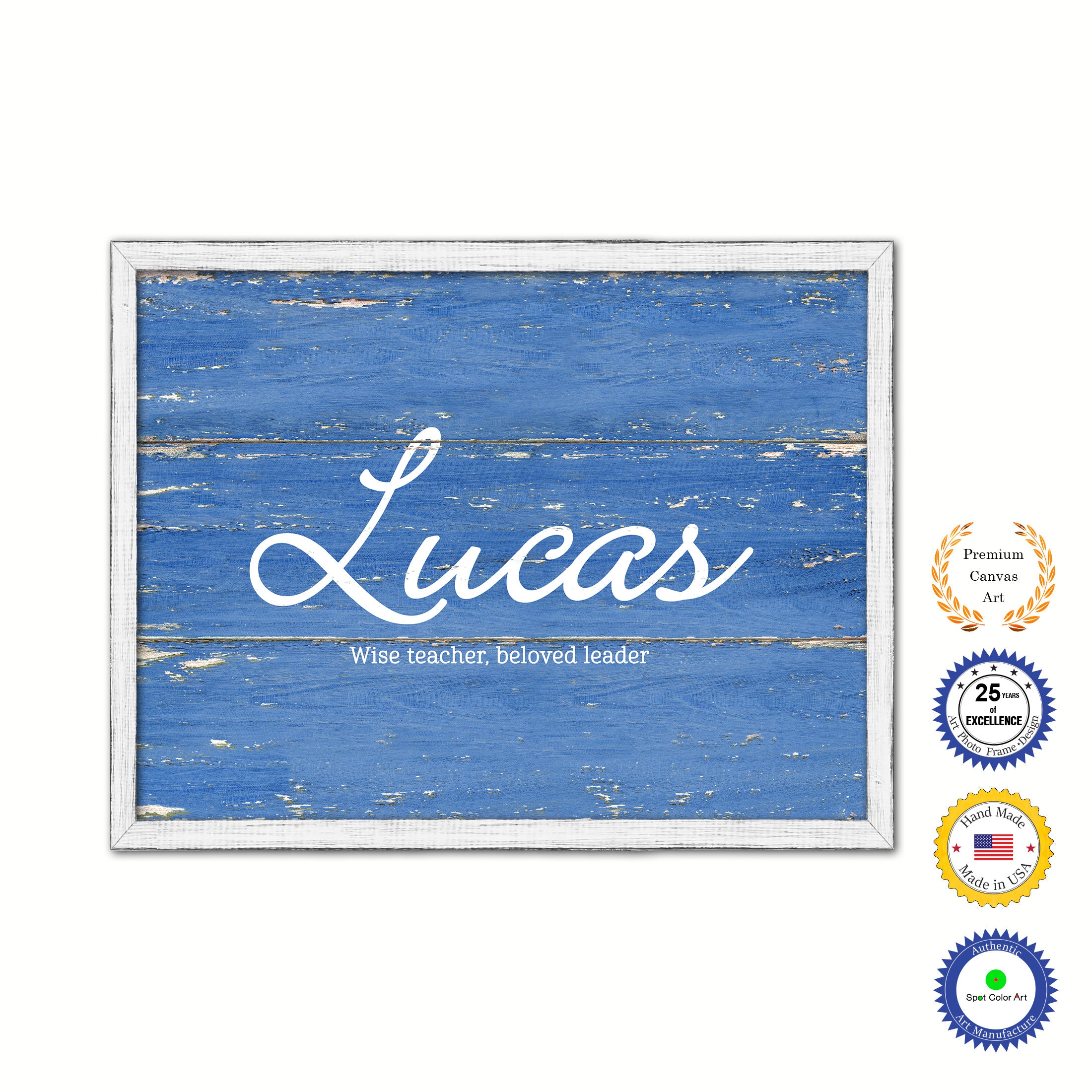Lucas Name Plate White Wash Wood Frame Canvas Print Boutique Cottage Decor Shabby Chic