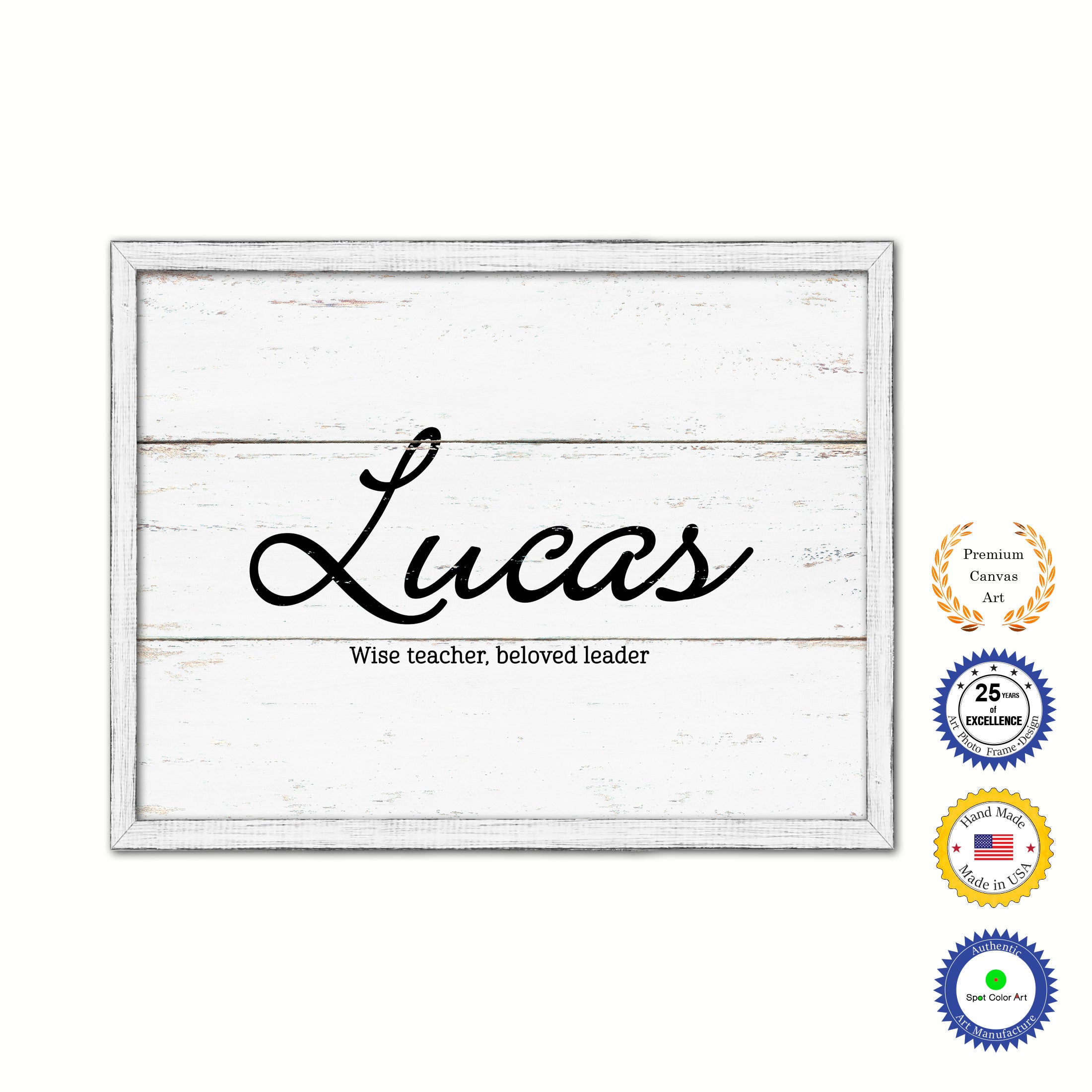 Lucas Name Plate White Wash Wood Frame Canvas Print Boutique Cottage Decor Shabby Chic